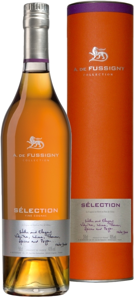 Купаж A. de Fussigny, Selection состоит из спиртов, произведенных в регионах Гран Шампань, Пти Шампань, Бордери, Фэн Буа и Буа Ординар.
