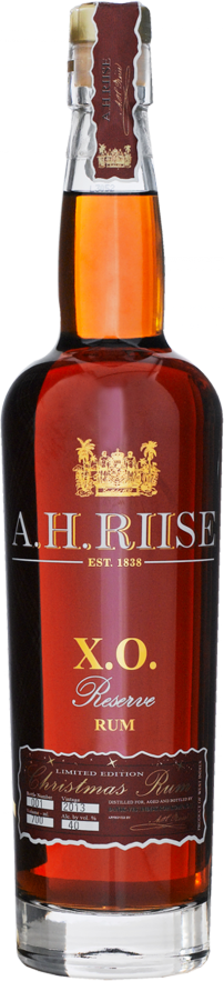 A.H. Riise, X.O. Reserve, Limited Edition, Christmas — великолепный ром, произведенный ограниченным тиражом. Ром представляет собой эксклюзивный бленд смешанных вручную в определенных пропорциях нескольких уникальных сортов карибского рома. Все содержащиеся в купаже дистилляты имеют возраст не менее 20 лет. "Рождественский" ром дополнительно выдерживается в бочках из-под хереса Педро Хименез, приобретая благородный оттенок красного дерева. Ром рекомендуется употреблять в чистом виде, чтобы в полной мере насладиться роскошным вкусом и многогранным ароматом напитка. Каждая бутылка рома имеет индивидуальную маркировку с номером бочки и датой наполнения.