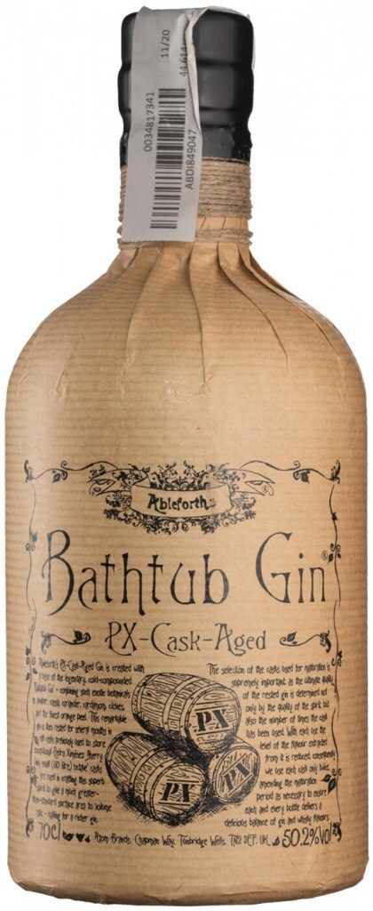 Ableforth's, Bathtub Gin, PX-Cask-Aged — крафтовый джин премиум-класса, изготавливаемый на основе высококачественного классического сухого джина. Название "Bathtub" дословно переводится как "ванна", однако сленговое "Bathtub Gin" фактически означает "самогон", что недвусмысленно намекает на крепость напитка. Дистилляция спирта с добавлением можжевельника, корня дягиля, семен кориандра, фиалкового корня, кардамона, солодки, коры кассии, корицы, цедры лимона и цедры апельсина протекает в медном кубе. Джин выдерживается в бочке из-под хереса Педро Хименес.