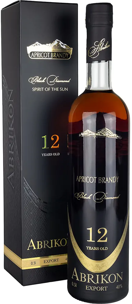 Abrikon, Brandy Black Diamond Edition, 12 Years Old — армянский бренди, созданный из абрикосовых выжимок методом перегонки в медных перегонных кубах. Сочные, полностью созревшие плоды абрикосов бережно снимают с веток и складывают в небольшие ящики, чтоб не повредить целостность фруктов. После извлечения косточек половинки абрикос подвергаются прессованию по аналогии с производством виноградного бренди. Срок выдержки абрикосовых дистиллятов составляет не менее 12 лет. Выдерживается бренди в бочках из мелкозернистого дуба из лесов Армении.