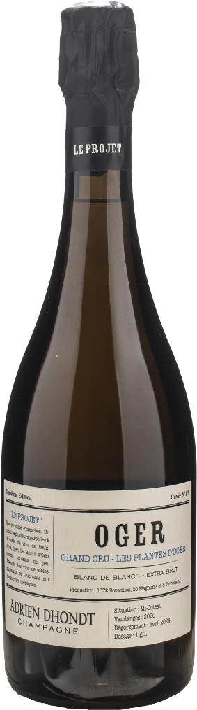 Adrien Dhondt, Les Plantes d'Oger, Grand Cru Blanc de Blancs Extra Brut получают из винограда сорта Шардоне, собранного с виноградника класса Гран Крю. Участок Les Plantes d’Oger в деревне Oger, известной своими меловыми почвами и идеальными условиями для выращивания Шардоне. Ферментация в барриках (частично новые бочки: около трети) и выдержка «на осадке» (fine lees) примерно 8 месяцев. Выдержка после второй ферментации (sur lie) и долгий срок до dégorgement, что позволяет развиться глубине аромата и текстуры.