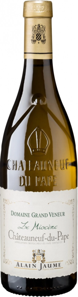 Изящное белое вино Domaine Grand Veneur, "Le Miocene" Blanc с большой точностью передает характер белых вин аппелласьона Шатонеф-дю-Пап. Входящие в его состав сорта Кларет и Руссан происходят с одного виноградника — "La Fontaine". Благодаря его северной экспозиции и местным глинистым почвам с примесью известняка, вино получается невероятно свежим и богатым на вкус. Оба сорта собираются вручную и после прессования проходят совместную ферментацию в резервуарах из нержавеющей стали при контролируемой температуре в 15 °С. Дальнейшая выдержка вина в дубовых бочках длится 6 месяцев. Потенциал хранения вина составляет 4 года.