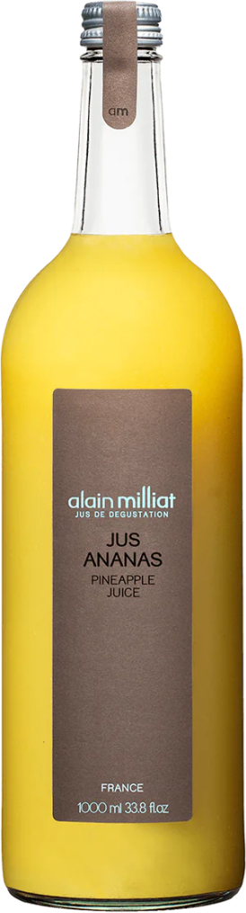 Alain Milliat, Jus Ananas — натуральный ананасовый сок, обладающий не только тонким ароматом и деликатным освежающим вкусом, но и множеством полезных свойств. В его производстве используются только натуральные ингредиенты, он не содержит красителей или ароматизаторов. Сок является источником витаминов группы B, С, А, PP, E, фосфора, калия, магния, кальция, железа и цинка, а также единственным известным источником бромелайна, фермента с противовоспалительными свойствами. Поэтому ананасовый сок не только вкусный, но и очень полезный для полноценной работы организма.
