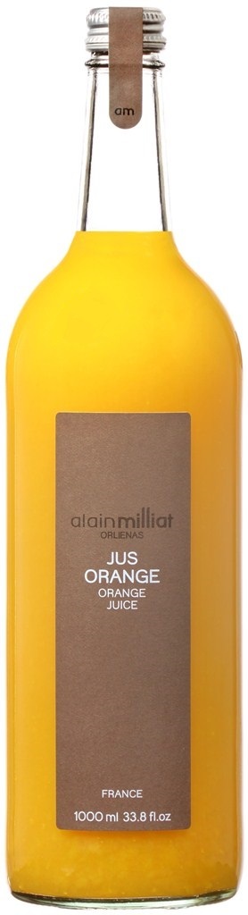 Alain Milliat, Jus Orange — ароматный, сладкий апельсиновый сок с горчинкой. Его процесс производства состоит из нескольких этапов: промывки и измельчения фруктов, прессования без нагрева, фильтрации и пастеризации при температуре +85 °С. Технология производства исключает применение консервантов и красителей.