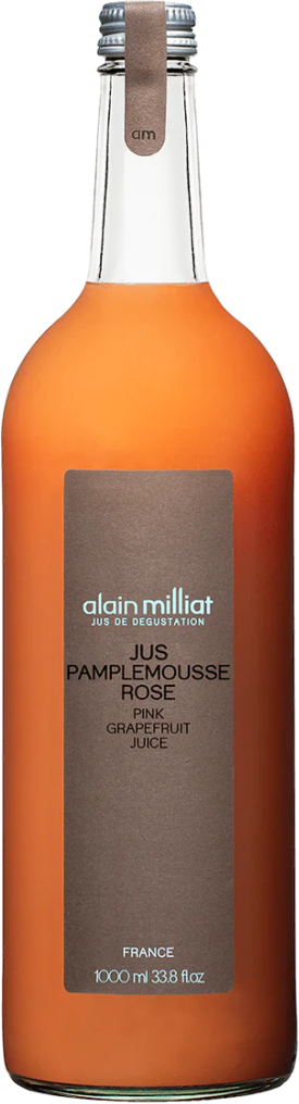 Alain Milliat, Pink Grapefruit — натуральный сок розового грейпфрута, обладающий ярким, насыщенным вкусом с приятной горчинкой и цитрусовыми тонами, в частности, грейпфрута. В его производстве используются только натуральные ингредиенты, он не содержит красителей или ароматизаторов. Сок богат витамином C, он отлично освежает знойным летним днем.