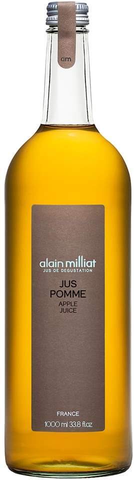 Alain Milliat, Apple Juice — ароматный сладкий яблочный сок. Его процесс производства состоит из нескольких этапов: промывки и измельчения фруктов, прессования без нагрева, фильтрации и пастеризации при температуре +85°С. Технология производства исключает применение консервантов и красителей. Напиток в процессе изготовления пропускают через слой кизельгура и целлюлозы, что дает возможность восстановить растительные частицы в суспензии. Таким образом, производитель получает абсолютно чистый сок. Яблоки выращивают на почвах, расположенных западнее Лиона.