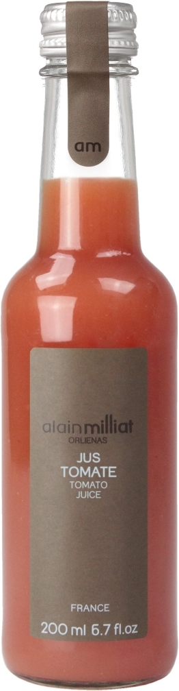 Alain Milliat, Jus Tomate — изысканный овощной сок из красных томатов. Его процесс производства состоит из нескольких этапов: промывки и измельчения овощей, прессования без нагрева, фильтрации и пастеризации при температуре +85°С. Технология производства исключает применение консервантов и красителей.
