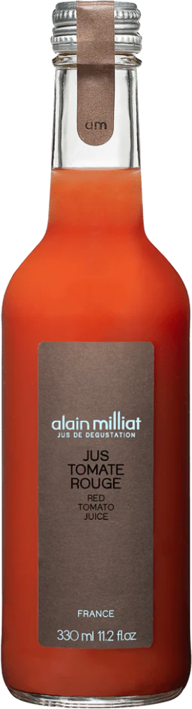 Alain Milliat, Jus Tomate — изысканный овощной сок из красных томатов. Его процесс производства состоит из нескольких этапов: промывки и измельчения овощей, прессования без нагрева, фильтрации и пастеризации при температуре +85°С. Технология производства исключает применение консервантов и красителей.