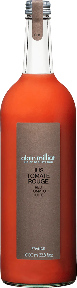 Alain Milliat, Jus Tomate — изысканный овощной сок из красных томатов. Его процесс производства состоит из нескольких этапов: промывки и измельчения овощей, прессования без нагрева, фильтрации и пастеризации при температуре +85°С. Технология производства исключает применение консервантов и красителей.