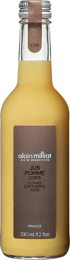 Alain Milliat, Jus de Pomme Cox's — нефильтрованный яблочный сок, изготовленный из яблок сорта Кокс. Кокс — это сорт яблони, впервые выращенный в 1830 году в Англии бывшим пивоваром и садоводом Ричардом Коксом. Сегодня его выращивают во Франции в Нормандии, вдали от экстремальных температур. Урожай собирают при полной зрелости, с конца сентября. В производстве сока используются только натуральные ингредиенты, он не содержит красителей или ароматизаторов.