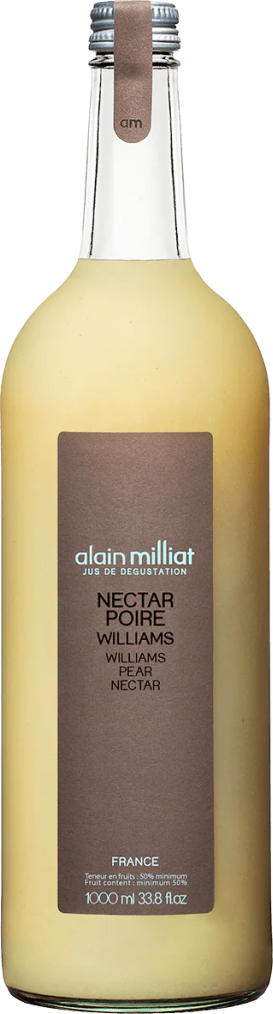Alain Milliat, Nectar Poire Williams — сладкий, ароматный нектар из груши сорта Вильямс. Обнаруженный в Южной Англии в конце XVIII века, этот сорт груш привлек внимание селекционера Ричарда Вильямса. В 1816 году он впервые представил сорт Лондонской организации по выращиванию фруктовых и садовых культур. Благодаря ему сорт распространился по все Европе и с тех пор носит его имя. Для производства нектара используются лучшие плоды, выращенные в Верхних Альпах на холме высотой 500 метров. В процессе производства из груш извлекают мякоть, разбавляя ее водой, пропускают через слой кизельгура и целлюлозы, что дает возможность восстановить растительные частицы в суспензии, пастеризуют при температуре +85 °С и разливают горячим способом. Так как технология исключает применение консервантов и красителей, для сохранения цвета и стабилизации вкуса в нектар добавляют сахар, лимонный сок и аскорбиновую кислоту.