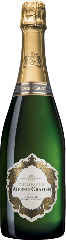 Alfred Gratien, Grand Cru Blanc de Blancs, Champagne — изысканное белое шампанское, способное покорить с первых секунд. В его производстве используется отборный виноград сорта Шардоне, который произрастает на виноградниках хозяйства Alfred Gratien. Сбор урожая проводится исключительно вручную, на винодельне плоды подвергаются традиционной винификации, проходящей со строгим температурным контролем. Шампанское является прекрасным аперитивом. Также его рекомендуется употреблять охлажденным с закусками, устрицами, морепродуктами и мягкими сырами.
