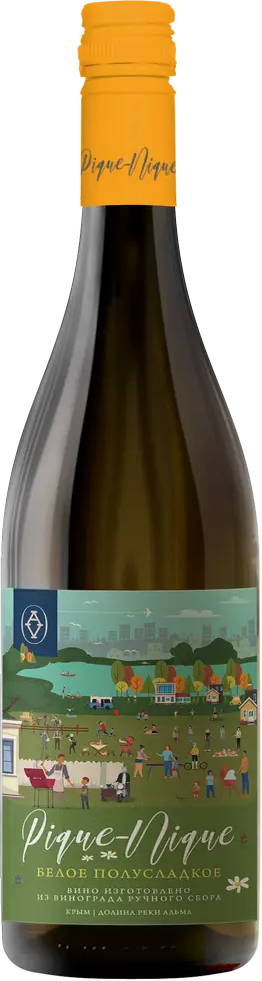 Белое полусладкое вино "Pique-Nique" изготавливается из винограда сортов Шардоне, Совиньон Блан, Траминер и Пино Блан, выращенных на землях Альминской долины, уникальный терруар которой позволяет получать виноград высочайшего качества. Здесь преобладает мягкий средиземноморский климат с умеренным количеством осадков, морской бриз обеспечивает хорошую вентиляцию. Почвы преимущественно представляют собой темно-бурые суглинки, а по долинам рек — богатые карбонатные черноземы. В недрах укрываются слои известняка и плотного мергеля. Виноградные лозы обрабатывают по системе Гюйо. Урожай собирается вручную с молодых лоз. Ферментация протекает в стальных чанах при контролируемой температуре и принудительно останавливается резким снижением температуры по достижении желаемого уровня сахара. В результате получается вино с ярким ароматом и приятным, сладковатым вкусом, которое станет отличным аперитивом, а также гармонично дополнит различные рыбные блюда, морепродукты и холодные закуски.