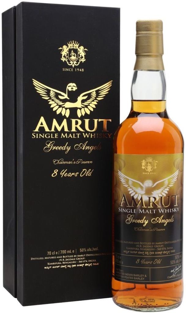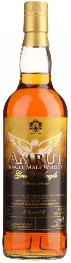 Фантастический виски "Greedy Angels" 8 Years Old был создан специально к 60-летнему юбилею президента компании "Амрут" — господина Неелаканта Джагдейла. На тот момент "Жадный ангел" 8-летний стал одним из самых старых виски компании. Название для виски было выбрано неслучайно. "Доля ангела", испаряемая из бочек при созревании виски, в Бангалоре, где производится Амрут, составляет около 12%. Это, по крайней мере, в шесть раз больше, чем в Шотландии. Данная доля, которую в компании и окрестили "Жадные ангелы", отвечает за ускоренное созревание напитка и сохранение его богатого ароматического профиля долгие годы.