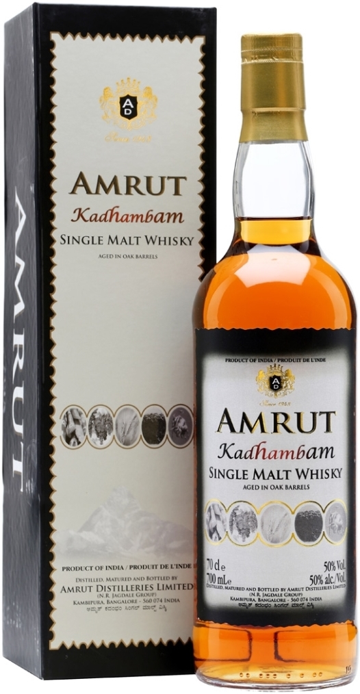 Amrut, Kadhambam — односолодовый индийский виски, который не подвергался холодной фильтрации. Крепость напитка составляет 50%. При изготовлении виски использовался отборный ячмень, выращенный у подножия Гималаев. Дистилляция небольшими партиями позволила сохранить натуральный аромат. "Амрут" Кадамбам выдерживали в дубовых бочках. Выдержка проходила в уникальных условиях тропического климата, на высоте 3 тысяч метров над уровнем моря, в Бангалор — индийском городе-саде.