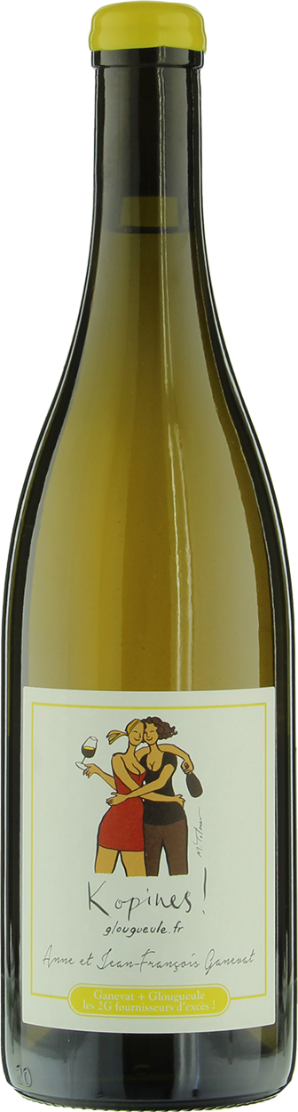 Anne et Jean-Francois Ganevat, Kopines! — зрелое, глубокое, чистое белое вино, которое легко пьется, но при этом обладает невероятной сложностью. Это вино — результат сотрудничества c биодинамическими производителями из других регионов. Так, в купаж вина входит Шардоне с собственных виноградников в Жюре, Шардоне из Бургундии и Алиготе. После ферментации с натуральными дрожжевыми культурами вино выдерживается в течение года в дубовых фудрах. Перед розливом вино не очищается и не фильтруется, сера не добавляется. Этикетку "Копин!" нарисовал известный дизайнер Мишель Толмер.