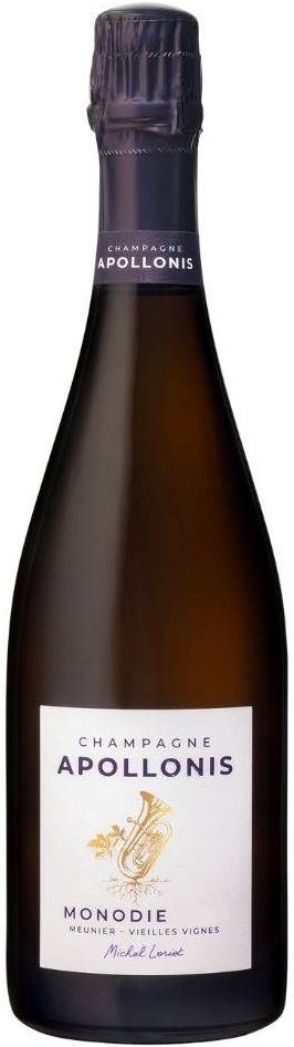 Apollonis, "Monodie" Meunier Vieilles Vignes Extra-Brut — сложное, богатое шампанское, в названии которого неслучайно указан музыкальный термин, означающий одноголосное пение или пение в унисон. Созданное в ритме классической музыки, "Моноди" — это "голос" красного винограда сорта Пино Менье, собранного с участка "L'arpente" с высокой экологической ценностью, посаженного дедом Мишеля Лорио — Жерменом Лорио — в 1942 году. Лозы, возраст которых составляет как минимум 70 лет, дают урожай с концентрированным, плотным вкусом и богатым ароматом. Изготовлению шампанского "Моноди" уделяется особое внимание. Его результатом является получение уникального вина, которое составит достойную пару изысканным блюдам. Вино выдерживалось в бутылках в течение более 9 лет под звуки классической музыки.