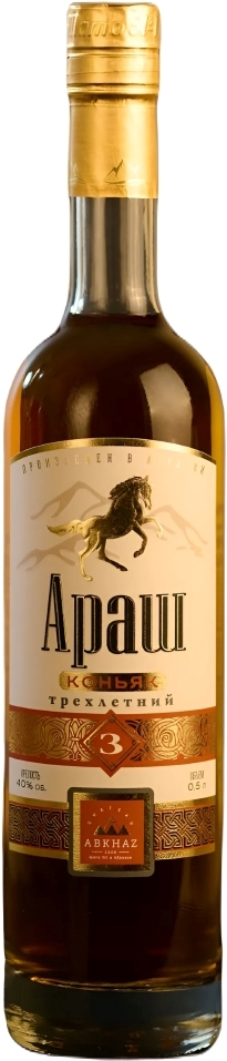 Коньяк "Arash" 3 Years Old создан стараниями мастеров-купажистов Шато Абхаз из коньячных спиртов трехлетней выдержки. Название "Араш" переводится с абхазского языка как "конь", который стал эмблемой напитка и изображен на этикетке. Коньяк демонстрирует мягкий, округлый вкус с тонкими нюансами ванили и может употребляться как дижестив или в качестве гастрономического сопровождения к сырам, фруктам и десертам.