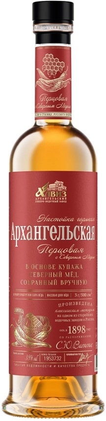 Архангельская, Вишня ручного сбора, настойка полусладкая, 0.5 л.