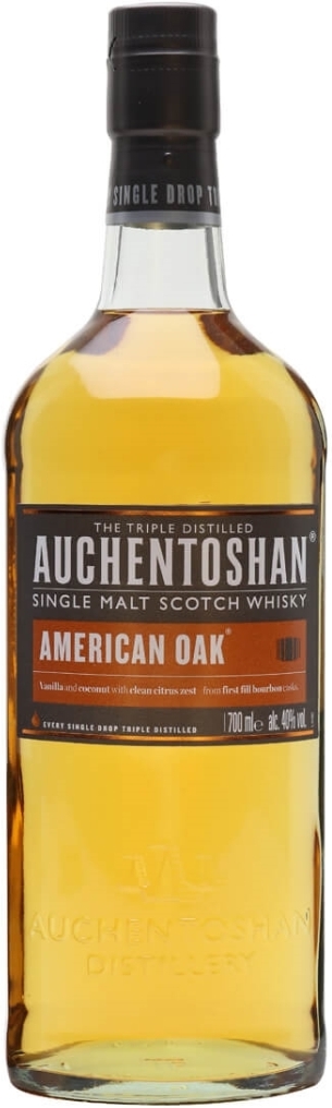 Auchentoshan American Oak — односолодовый шотландский виски тройной дистилляции, созревание которого на протяжении 8 лет происходило в американских дубовых бочках из-под бурбона. Производители крепких напитков используют данные бочки с конкретной целью: обогатить вкус виски и сделать его более сложным. Крепость напитка составляет 40 %. Вкус виски — гладкий и живой, обладает тонами ванильного крема, кокоса, белого персика, специй и грейпфрута. Аромат — гармоничный и наполнен нотками ванили, кокоса и пикантными цитрусовыми нюансами.
