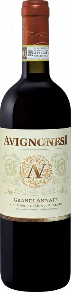 Все, что потребовалось для создания вина Avignonesi, Grandi Annate, Vino Nobile di Montepulciano — великолепный Санджовезе, уникальный терруар и отчетливый стиль виноделия Авиньонези. Вино является лучшим выражением Санджовезе с виноградников компании, расположенных в Монтепульчано. Оно производится только в самых лучшие годы, когда климат создает оптимальные условия для роста лоз и получения винограда, способного выразить всю сложность терруара. Вино из этого винограда всегда обладает не только богатым стилем и сильным характером, но и выносливостью, что позволяет хранить его долгие годы. Укреплению этих характеристик помогает и длительная выдержка вина после ферментации. Общий срок выдержки составляет 36 месяцев (18 месяцев — в бочках из французского дуба и больших тонно, 18 месяцев — в бутылках).