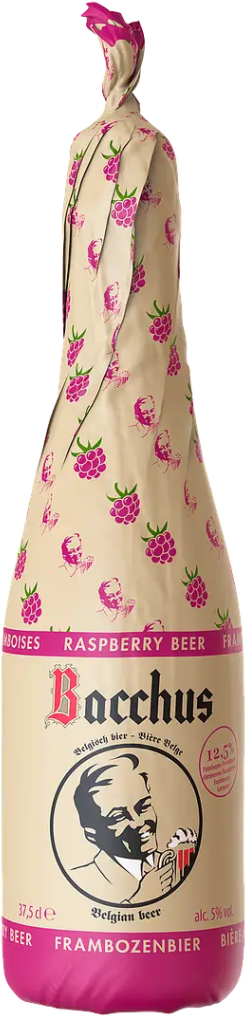 Bacchus, Frambozenbier — бельгийский эль, изготовленный на основе фландрского коричневого эля и сока малины. Пиво обладает гармоничным, свежим вкусом с отличным балансом сладости и кислинки. На заднем плане прослеживаются карамельно-солодовые оттенки. Аромат раскрывается богатыми тонами спелых ягод малины и нюансами коричневого эля. "Бахус" Малиновое послужит прекрасно утоляющим жажду напитком до или после трапезы. Его также подают в качестве освежающего дополнения к сладостям.