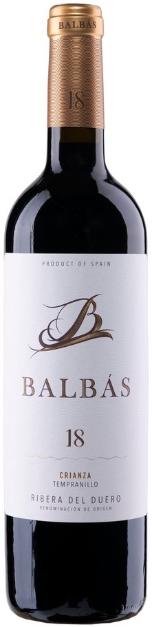 Balbas, Crianza, Ribera del Duero — мощное, но при этом элегантное красное сухое вино, изготовленное из винограда сортов Темпранильо (90%) и Каберне Совиньон (10%), произрастающих на виноградниках хозяйства в регионе Рибера-дель-Дуэро. Регион расположен на северной возвышенности Иберийского полуострова. Свое название Ribera del Duero, что в переводе с испанского языка буквально означает "долина реки Дуэро", регион получил от одноименной реки, которая протекает через его территорию. Климат региона характеризуется жарким сухим летом и холодной, суровой зимой. Заметные колебания ночных и дневных температур создают благоприятные условия для оптимального фенольного созревания ягод с насыщенным ароматом и уникальным фруктовым характером. Виноградные лозы, возраст которых составляет 35 лет, выращиваются на песчаных почвах, содержащих гравий с примесью глины на высоте 800 метров над уровнем моря. Почвы бедны питательным элементами, но обладают хорошими дренажными свойствами, что обеспечивает лозам доступ к глубоко залегающим грунтовым водам.