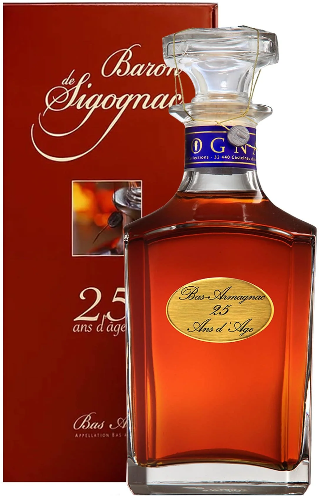 Арманьяк Baron de Sigognac, 25 Аns d'Аge, Bas-Armagnac, with carafe in gift box, 0.7 л.