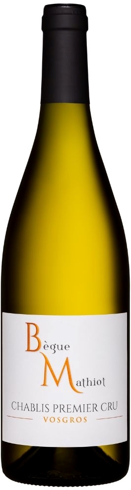Domaine Begue Mathiot, Chablis 1-er Cru "Vosgros" — очаровательное белое вино, созданное из винограда сорта Шардоне. Ягоды произрастают на участке класса Премье Крю "Вогро" в апелласьоне Шабли на глинисто-известковых почвах киммериджского происхождения. Сбор урожая проводится механически в момент оптимальной спелости ягод, на винодельне плоды подвергаются бережному прессованию с последующим осаждением в течение 12 часов и ферментацией, проходящей в стальных резервуарах с добавлением культурных дрожжей со строгим температурным контролем. Выдерживается вино на тонком осадке. Перед употреблением вино рекомендуется охладить до температуры 8–10°С.