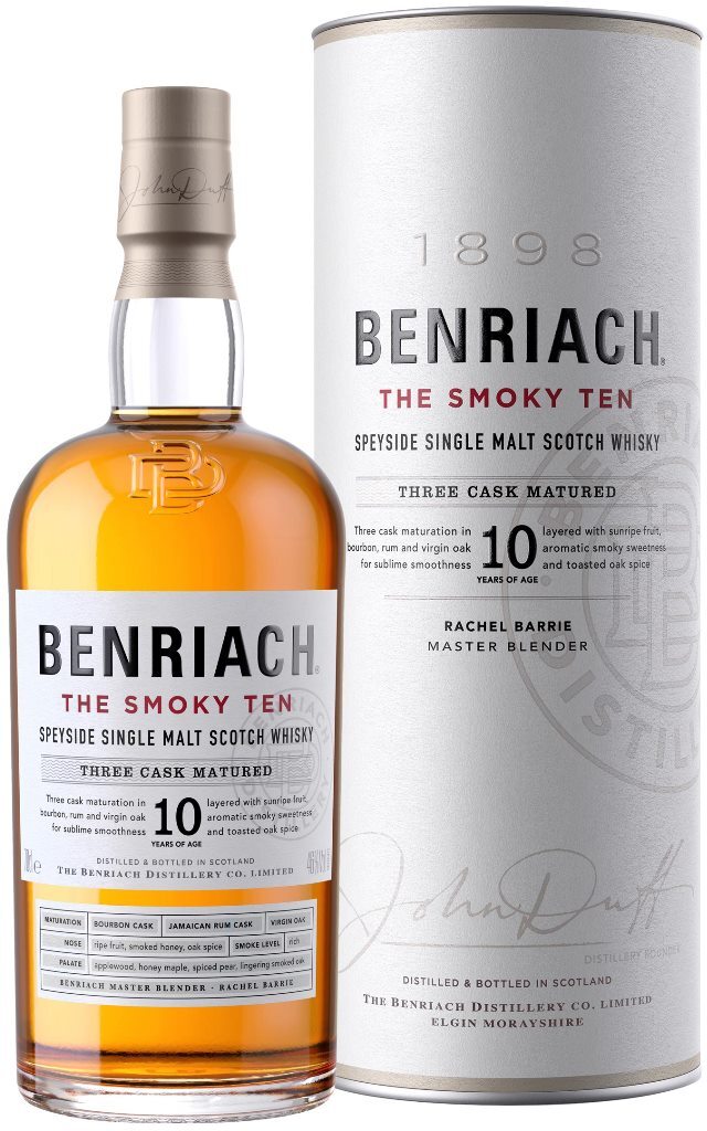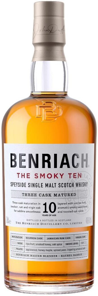 Виски Benriach The Smoky The Smoky Ten — односолодовый шотландский виски, который создан в стиле 19-века, когда солод сушили торфом. В производстве используются окуренные и неокуренные спирты. Виски выдержан в течение десяти лет в бочках из-под бурбона, бочонках из-под ямайского рома и нового дуба. Виски рекомендуется в качестве дижестива, в чистом виде или с добавлением воды/льда.