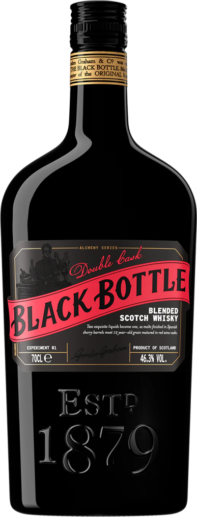 Black Bottle, Double Cask — один из двух первых выпусков серии "Black Bottle Alchemy", который объединяет в себе солодовый виски, выдержанный в бочках из-под испанского хереса, и зерновой виски, выдержанный в бочках из-под красного вина. Вместе с виски "Black Bottle" Island Smoke они образуют уникальный симбиоз изысканности и богатства.