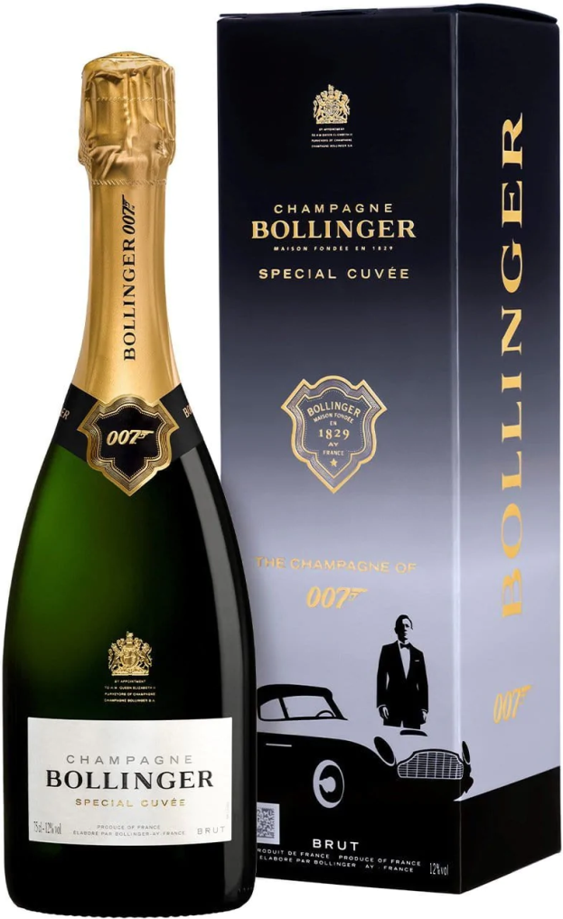 Bollinger, "Special Cuvee 007" — это лимитированная серия классического "Special Cuvee", выпущенная специально в честь мировой премьеры двадцать пятого фильма о Джеймсе Бонде "Не время умирать", которая должна была состояться в 2020 году, но была перенесена на 2021 год. Также этот релиз ознаменовал знаменательную дату — исполнилось уже более чем 40 лет партнерству компании Bollinger в качестве официального представителя напитков легендарного британского секретного агента Джеймса Бонда.