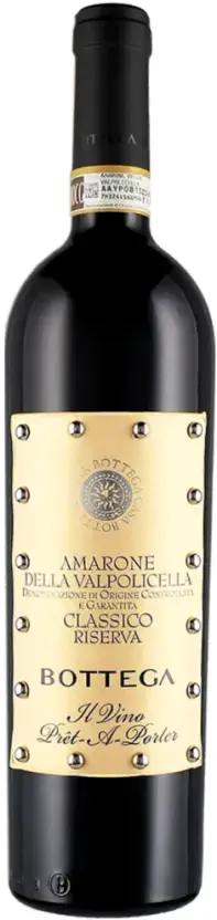 Bottega, "Il Vino Pret-A-Porter" Amarone della Valpolicella Classico Riserva — одно из значимых итальянских вин, покорившее самые изысканные вкусы гурманов во всем мире благодаря своей неповторимой индивидуальности, очарованию и характеру. Бутылка, украшенная яркой кожаной этикеткой с металлическими заклепками, для этого благородного вина была создана американским дизайнером, Дениз Фосил.