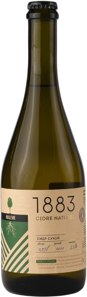 Bullevie, 1883 Dry — сухой натуральный яблочный сидр, изготовленный из яблочного сока прямого отжима без добавления сахара, красителей и ароматизаторов в соответствии с французскими и английскими рецептурами. Яблоки выращиваются в собственных садах компании, занимающих больше 8 га земли в Лужском районе Ленинградской области. Здесь, в экологически чистом уголке России среди озер и лесов, отлично прижились яблони из Франции и Англии. После сбора урожая яблоки тщательно сортируются, моются и отправляются на переработку в соковыжималку. Полученный сок ферментируется, фильтруется и разливается в бутылки. По завершении выдержки проводится дегоржаж.