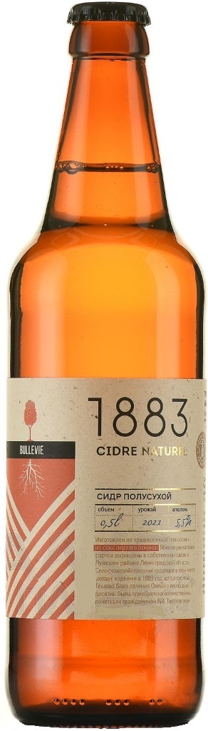 Bullevie, 1883 Semi-Dry — полусухой натуральный яблочный сидр, изготовленный из яблочного сока прямого отжима без добавления сахара, красителей и ароматизаторов в соответствии с французскими и английскими рецептурами. Яблоки выращиваются в собственных садах компании, занимающих больше 8 га земли в Лужском районе Ленинградской области. Здесь, в экологически чистом уголке России среди озер и лесов, отлично прижились яблони из Франции и Англии. После сбора урожая яблоки тщательно сортируются, моются и отправляются на переработку в соковыжималку. Полученный сок ферментируется, фильтруется и разливается в бутылки. По завершении выдержки проводится дегоржаж.