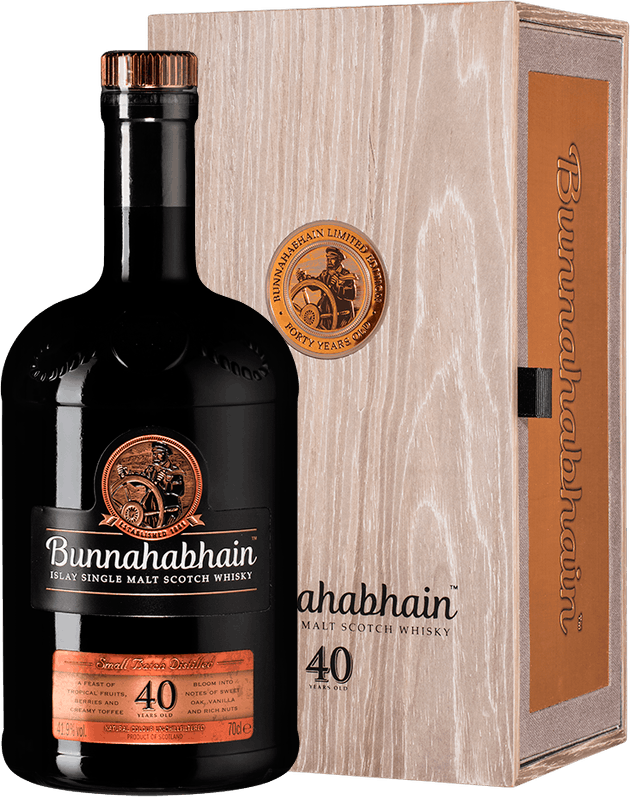Признанный лидер конкурса "The Whisky Show, 2012", виски "Bunnahabhain" 40 Years был выпущен в лимитированном количестве — 750 вручную пронумерованных бутылей. Четыре долгих десятилетия этот виски провел в тишине и прохладе складов Bunnahabhain на морском побережье. Бочки со старыми спиртами были забыты на долгие годы, пока мастер купажа не открыл их заново при просмотре складских книг. Этот уникальный и редкий виски – истинный клад для ценителей Bunnahabhain.