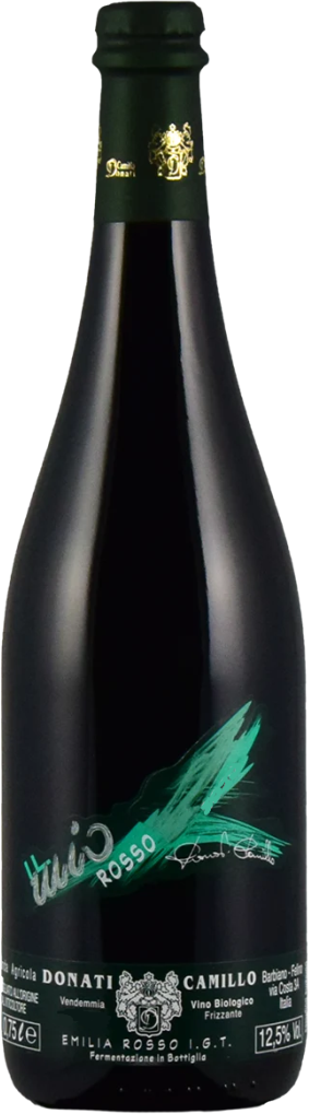 Camillo Donati, Il Mio, Rosso della Bandita, Emilia Rosso — биодинамическое красное игристое вино из четырех сортов винограда, которое Камилло Донати создает так, как это делали его бабушка и дедушка в Эмилии, часто смешивая весь виноград, который они выращивали. Однако, в Россо делла Бандита есть и что-то другое, что-то более глубокое, более личное для Камилло Донати. Это бленд подразумевает виноград, собранный вместе в разной степени зрелости и также вместе отжатый и винифицированный. В результате получается игристое, сухое, простое, молодое красное вино, идентичность которого определяется не сортом винограда, а, скорее, характеризуется сочетанием и несоответствием четырех сортов винограда, находящихся вместе на протяжении всего времени.