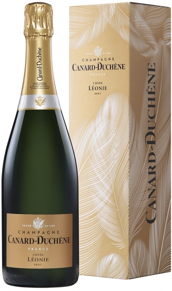 Canard-Duchene, Cuvee Leonie, Brut, Champagne — утонченное, изысканное шампанское дома Canard-Duchene, созданное в честь его основательницы, Леони Дюшен. Оно производится из классических для шампанского сортов винограда — Пино Нуар, Пино Менье и Шардоне. Пино Нуар обеспечивает шампанскому хорошую структуру и элегантную фруктовость, Пино Менье насыщает вино богатством и мощью, а Шардоне придает свежесть и гармоничность. После сбора урожая, ягоды подвергаются традиционной винификации. Выдержка шампанского осуществляется в течение трех лет в бутылках в погребах винодельни.