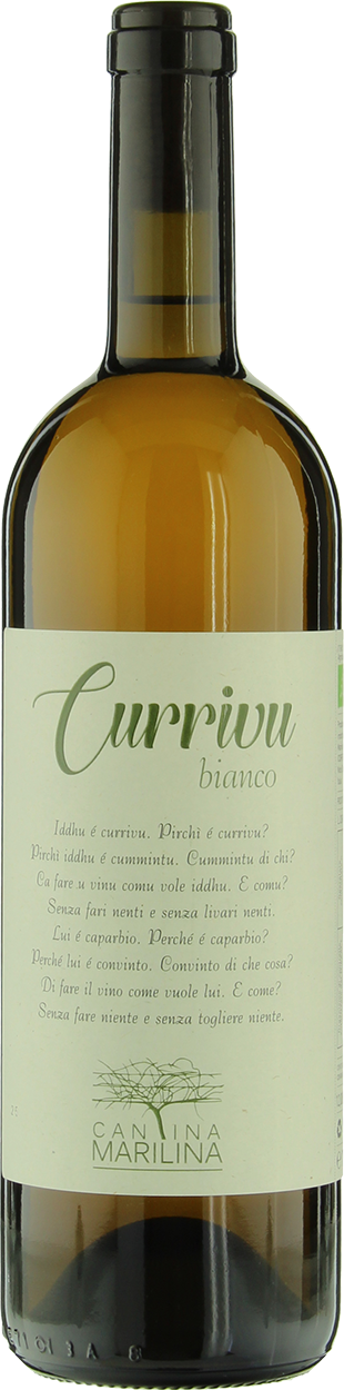 Cantina Marilina, Currivu, Bianco — органическое белое вино, которое предлагает более широкий взгляд международного масштаба. Оно создается из купажа двух сортов винограда — итальянского Вионье и международного Шардоне, выращенного в коммуне Ното на белой известковой почве. Урожай собирается вручную, после ферментации в цементных резервуарах вино выдерживается в них же 6 месяцев, после чего слегка фильтруется и дозревает в бутылках еще полгода. Бутылка для вина, изготовленная из легкого стекла, с натуральной пробкой и этикеткой из переработанной натуральной бумаги несет "нулевое воздействие на окружающую среду".