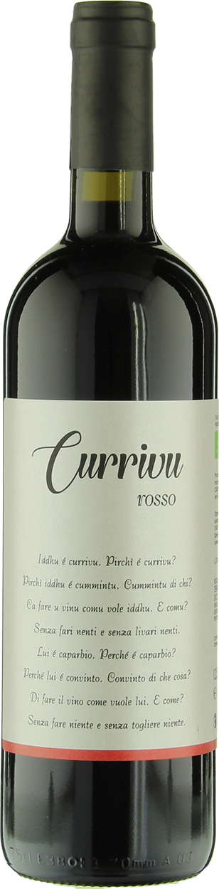 Cantina Marilina, Currivu, Rosso — органическое красное вино, которое предлагает более широкий взгляд международного масштаба. Оно создается из купажа двух сортов винограда — итальянского Неро д'Авола и международного Мерло, выращенного в коммуне Ното на белой известковой почве. Урожай собирается вручную, после ферментации в цементных резервуарах вино выдерживается в них же 8 месяцев, после чего слегка фильтруется и дозревает в бутылках еще 3 месяца. Бутылка для вина, изготовленная из легкого стекла, с натуральной пробкой и этикеткой из переработанной натуральной бумаги несет "нулевое воздействие на окружающую среду".