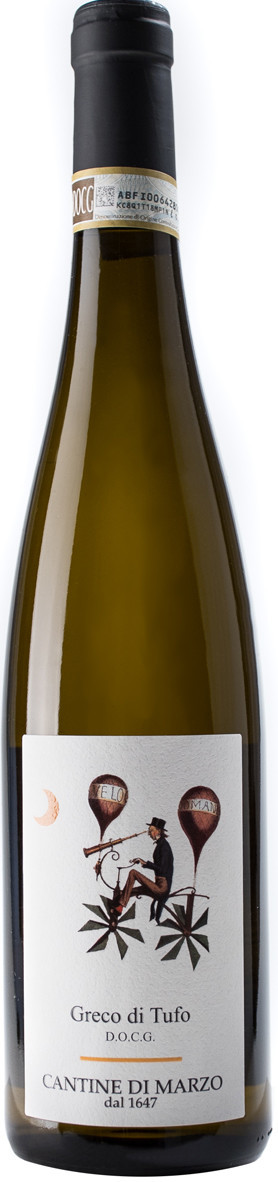 Cantine di Marzo, Greco di Tufo — белое сухое вино, созданное из винограда сорта Греко, выращенного на виноградниках Туфо. Еще четыре столетия назад семья Марцо первой высадила виноградные лозы Греко, привезенные со склонов Везувия, на местных минеральных почвах. После ручного сбора урожая, тщательной сортировки и мягкого дробления, сусло ферментируется в чанах из нержавеющей стали с добавлением специально отобранных культур дрожжей. После 6-месячной выдержки на осадке для придания глубины и сложности, производится частичная малолактическая ферментация, в зависимости от уровня естественной кислотности вина. Перед бутилированием вино слегка фильтруется и хранится в погребах Cantine de Marzo до окончательной готовности.