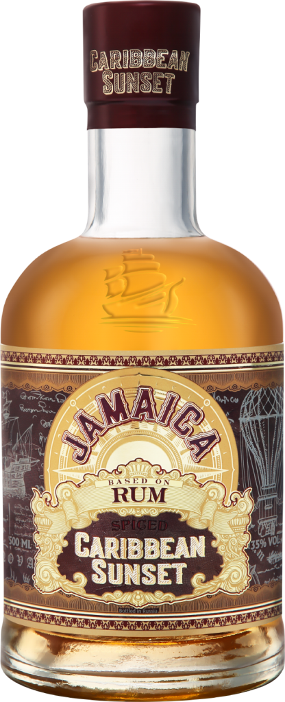 Caribbean Sunset, Spiced based on Jamaican Rum — спиртной напиток, изготовленный на основе ямайского рома и щедро обогащенный специями и пряностями. Ямайский ром славится своим насыщенным вкусом и богатым ароматом, чему способствует давняя, проверенная временем технология, которой пользуются большинство ямайских производителей. В производстве традиционно используют сахарный тростник, обильно произрастающий на местных плантациях. Ромовый напиток является идеальной базой для многих коктейлей.