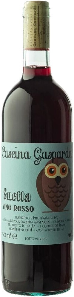 Cascina Gasparda, Suetta — натуральное красное вино, изготовленное из автохтонных сортов винограда Барбера и Гриньолино, которые выращиваются органическими методами на виноградниках поместья в Оливоле в долине Генза. Урожай собирается исключительно вручную по достижении ягодами оптимальной спелости. Коферментация с натуральными дрожжами начинается спонтанно и протекает в емкостях из стекловолокна без контроля температуры. Выдерживается вино в тех же емкостях, после чего разливается в бутылки без оклейки, фильтрации и добавления серы. Покоряющее своей простотой и потрясающей питкостью вино "Суэтта" от семейного поместья Cascina Gasparda способно доставить мгновенное удовольствие.