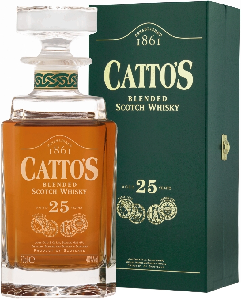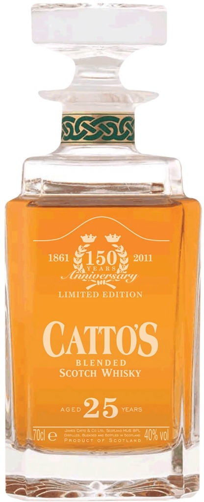 Премиальный купажированный виски Cattos, 25 Years Old был выпущен в 2011 году в честь 150-го юбилея бренда Каттос. Всего было изготовлено 2400 бутылок этого редкого и ценного напитка, помещенного в эксклюзивные кристальные декантеры от фирмы Lochinvar. Для купажа были использованы спирты, выдержанные не менее 25 лет в бочонках из-под бурбона и хереса. Виски Каттос 25-летний покоряет своим округлым и безупречно сбалансированным вкусом, демонстрируя глубокий и многослойный аромат.