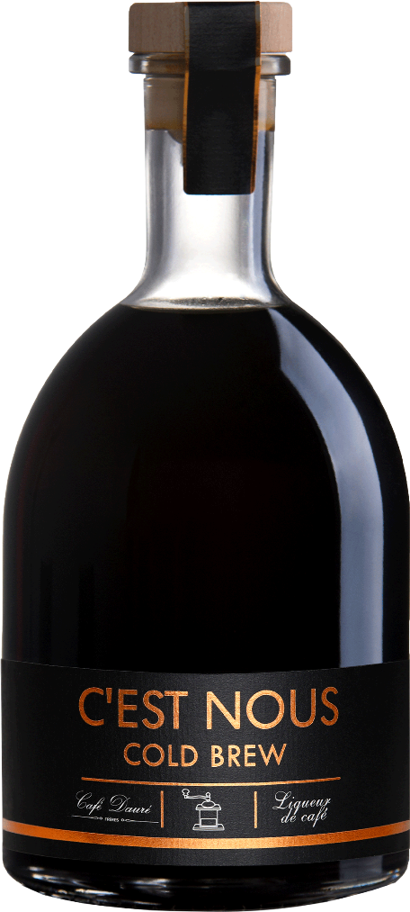 Идея создания кофейного ликера "C'est Nous" Cold Brew появилась благодаря Максиму из Cafe Daure, который варит ароматный кофе всего в 50 метрах от винокурни C'est Nous. Вместе с Максимом основатели C'est Nous выбрали идеальную смесь двух кофейных зерен: Арабика из Кении добавляет фруктовые ноты, а эфиопский кофе отвечает за насыщенность и цвет. Кофейные зерна обжаривают и перемалывают. В производстве используется спирт, который несколько раз дистиллировали на винокурне. Кофейный ликер производится по технологии холодного заваривания, используя метод капельной экстракции. Эта техника без подогрева позволяет сохранить всю тонкость и свежесть кофе без добавления горечи. При использовании холодных настоев отсутствует второй нагрев кофейных зерен и, следовательно, снижается горечь. Перед розливом в бутылки добавляется сахарный сироп, чтобы придать ликеру деликатную сладость. В результате получается интенсивный кофейный ликер, который прекрасно сочетается с различными коктейлями, особенно с эспрессо-мартини.