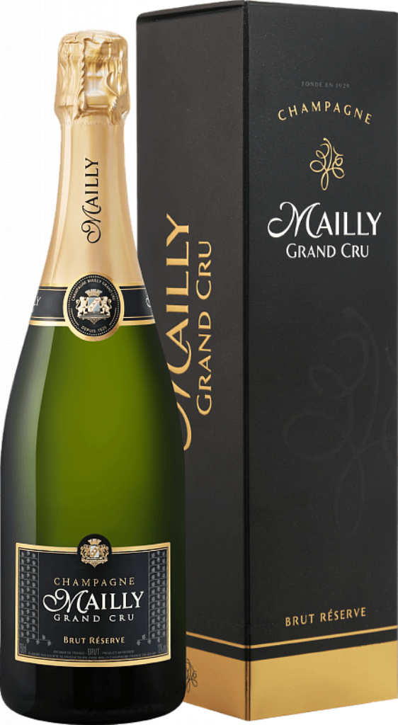 Champagne Mailly, Grand Cru, Brut Reserve — изысканное шампанское, олицетворяющее особый стиль вин компании Champagne Mailly. Кюве изготавливается из винограда сортов Пино Нуар и Шардоне, собранных в зоне, которая классифицируется как Гран Крю. Это говорит о высоком статусе и безупречном качестве шампанского. В процессе винификации осуществляется алкогольная ферментация и яблочно-молочное брожение в стальных резервуарах при контролируемой температуре. Выдерживается брют традиционным способом в меловых пещерах хозяйства.
