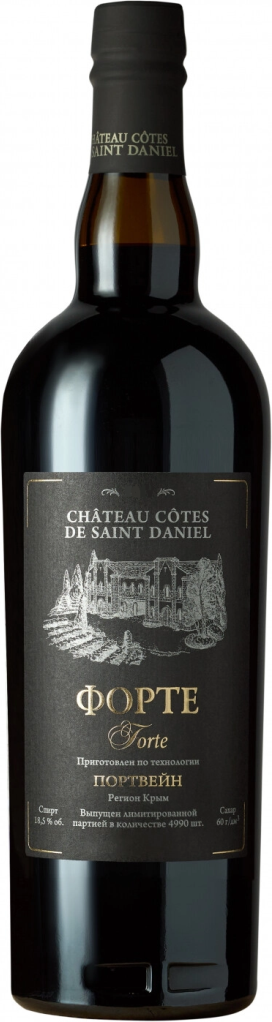 Название "Forte" ("Могучее") сразу же заявляет о необузданном, сильном характере вина. Классический сорт Каберне Совиньон придает ему терпкость и глубину. Сбор винограда проводят во второй половине сентября, когда в ягодах достигается оптимальный баланс сахаристости и кислотности. Виноград тщательно сортируется, ссыпается в чан и нагревается до 45°С для получения насыщенного цвета и яркого аромата. Спустя сутки температуру снижают до 27°С, добавляют дрожжи, и начинается процесс брожения. Через неделю брожение останавливают путем добавления спирта-ректификатора. Выдержка вина происходит в дубовых барриках не менее 3-х лет.