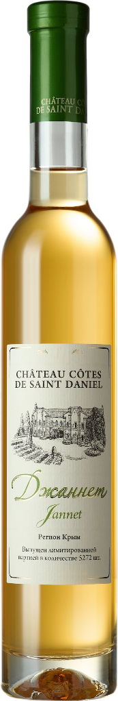 Крепленое ликерное вино Chateau Cotes de Saint Daniel, "Jannet" производится из винограда сорта Мускат Белый, который считается настоящей гордостью виноградников Крыма. Сбор урожая проводится вручную в середине сентября. Виноград подвергается сортировке на триажном столе, гребнеотделению и дроблению. После мягкого прессования в течение 12 часов проводится мацерация на кожице при температуре не выше 15 °С, затем начинается брожение при температуре 18 °С под контролем экспертов. Брожение останавливают путем добавления спирта-ректификатора и вино отправляют на отдых. Выдержка вина происходит в барриках из французского дуба на протяжении 24 месяцев. Бутилирование проводится с использованием многоступенчатой фильтрации и без пастеризации. В результате получается соблазнительно сладкое вино, настоящий эликсир, который по достоинству оценят женщины. Это вино также называют "Райским уголком" за те мгновения наслаждения, которые оно способно подарить.