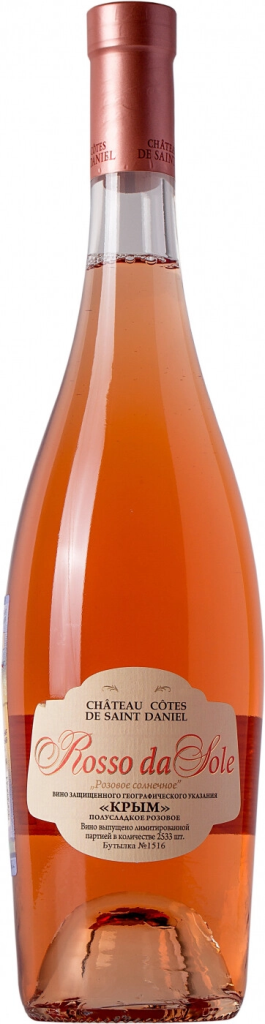 Вино "Rosso da Sole" создано в стиле "talk wine", что дает ему способность создавать непринужденную атмосферу при общении с друзьями. Это розовое полусладкое вино изготавливается из винограда сорта Мускат Розовый, который наделяет его характерным медово-цветочным букетом. Сбор винограда проводится в середине сентября по достижении ягодами оптимальной фенольной зрелости. Ягоды быстро транспортируют на винодельню в небольших пластиковых ящиках по 12-15 кг, где после сортировки, гребнеотделения, повторной сортировки и мягкого прессования проводится мацерация при контролируемой температуре около 20 °С в течение 2 часов. В течение этого времени кожица винограда отдает основные ароматические компоненты виноградному суслу. Ферментация проходит при строгом температурном контроле и останавливается путем резкого снижения температуры для сохранения остаточного сахара на уровне 25-35 г/л. Через месяц вино бережно фильтруют и оставляют медленно дозревать в чанах из нержавеющей стали при низких температурах, чтобы сохранить яркость мускатных оттенков.