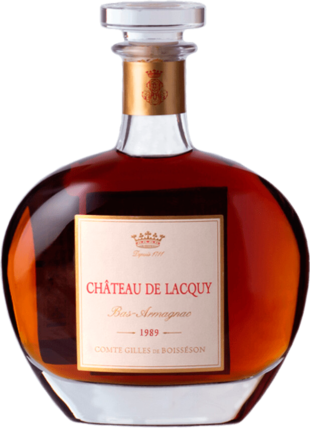 Chateau de Lacquy, Bas-Armagnac, 1989 — превосходный миллезимный арманьяк, обладающий цветочно-древесным ароматом и мощным медовым вкусом выдающейся длины. Арманьяк был создан из винограда сорта Бако. Из него получилось вино, которое имело довольно высокое содержание сахара. Дистилляция в собственных перегонных кубах хозяйства состоялась в ноябре 1974 года. Выдержка арманьяка проходила в 420-литровых дубовых бочках (наполовину новых, наполовину старше 7 лет) в подвалах Шато де Лаки, которые являются одними из старейших и лучших в регионе. При производстве арманьяка не используются холодная фильтрация, красители и искусственные добавки.